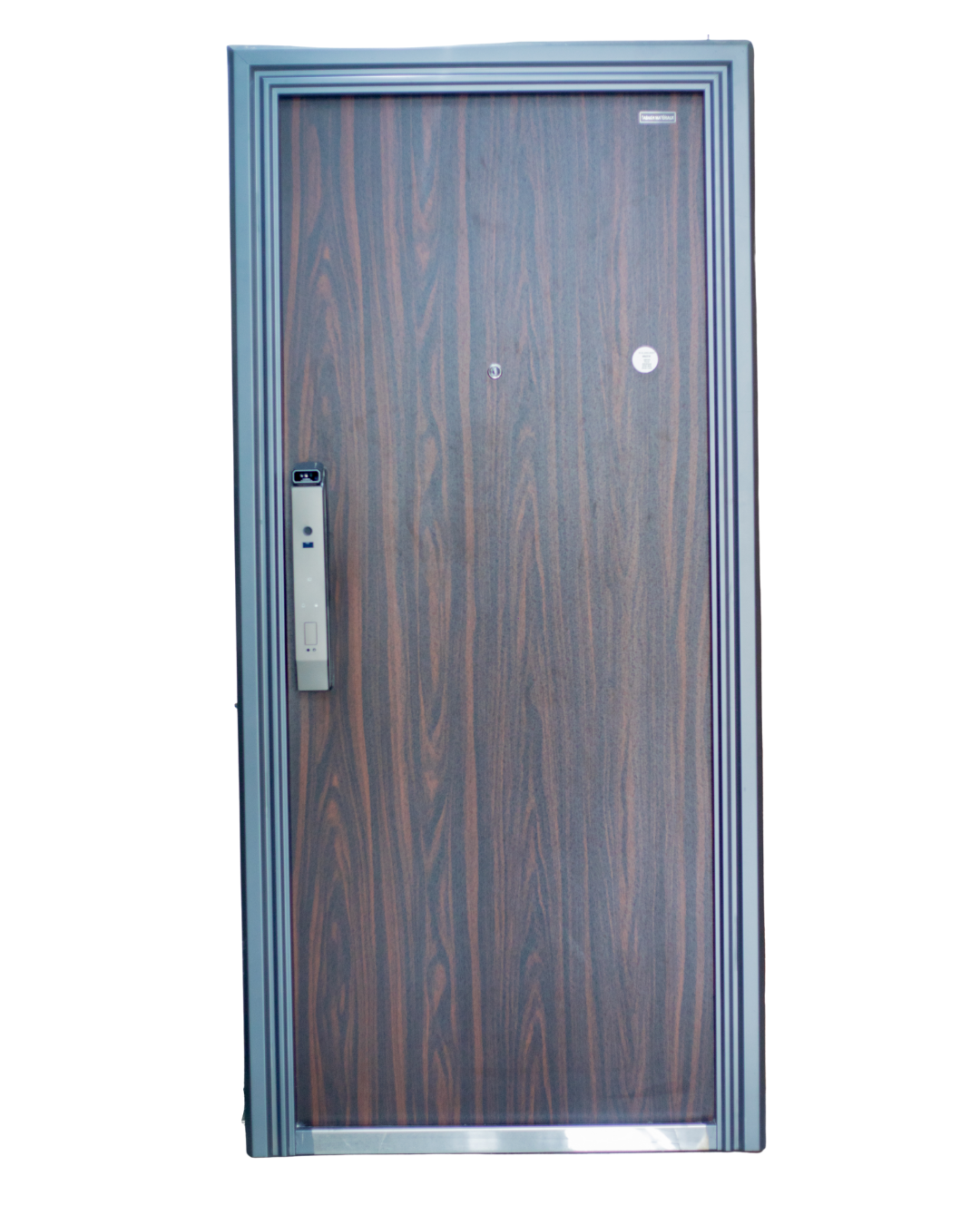 Porte blindée simple battant, finition bois foncé, idéale pour allier sécurité et élégance. Conçue pour résister aux tentatives d’effraction tout en apportant une touche chaleureuse à votre entrée.